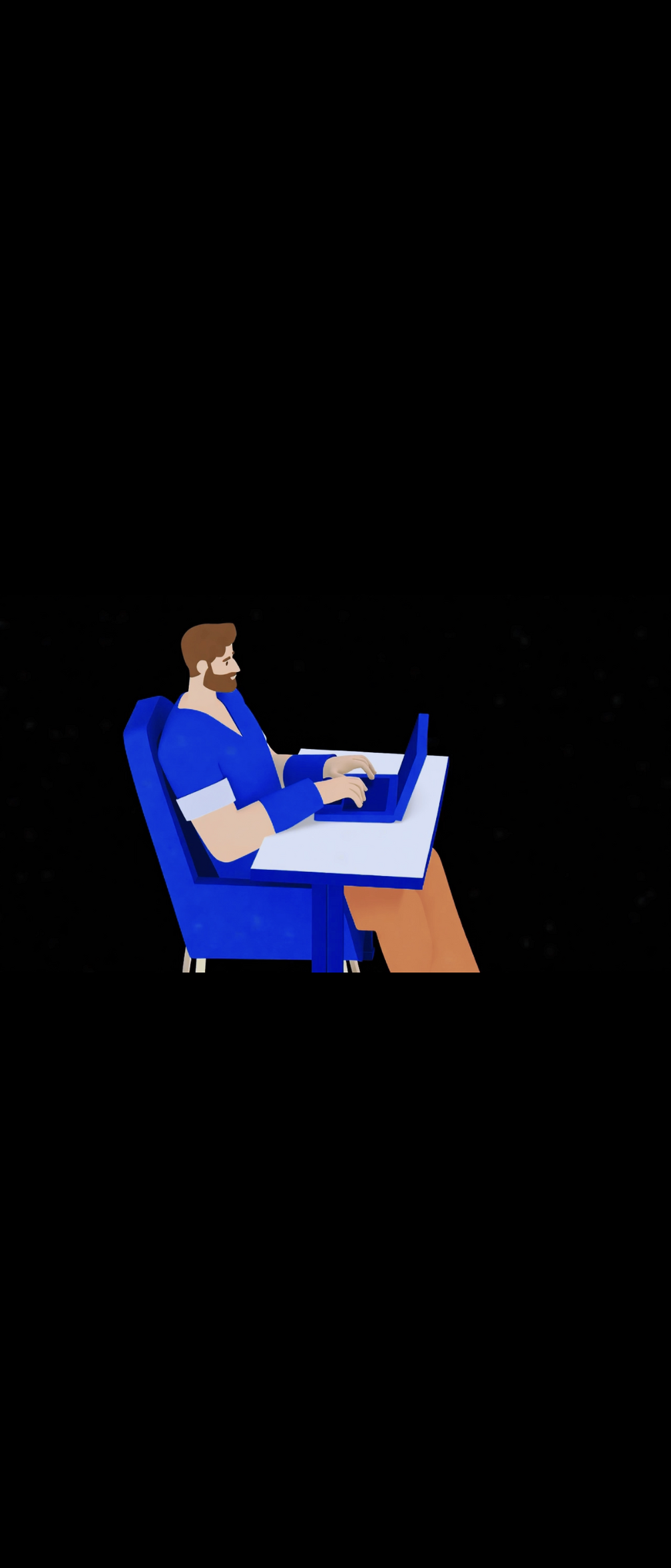 A pack of 3d vector man animation working on laptop